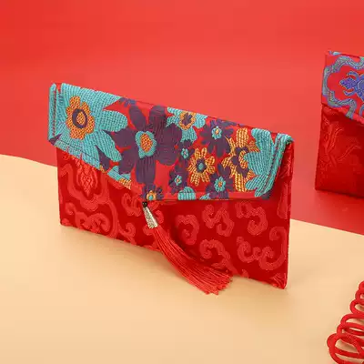High-end New Year red envelope Wedding universal fabric satin ten thousand yuan money bag Creative personality Year of the ox pressure year old bag red packet