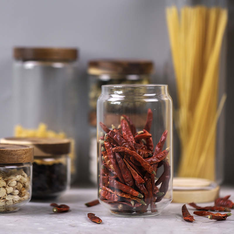 Japanese style wooden cover glass cans retro glass tea leaf sealing tank for grain collection tank