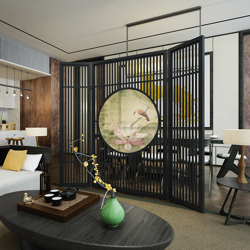 Modern Chinese screen partition folding mobile solid wood living room office simple fashion hotel environmental protection folding screen porch