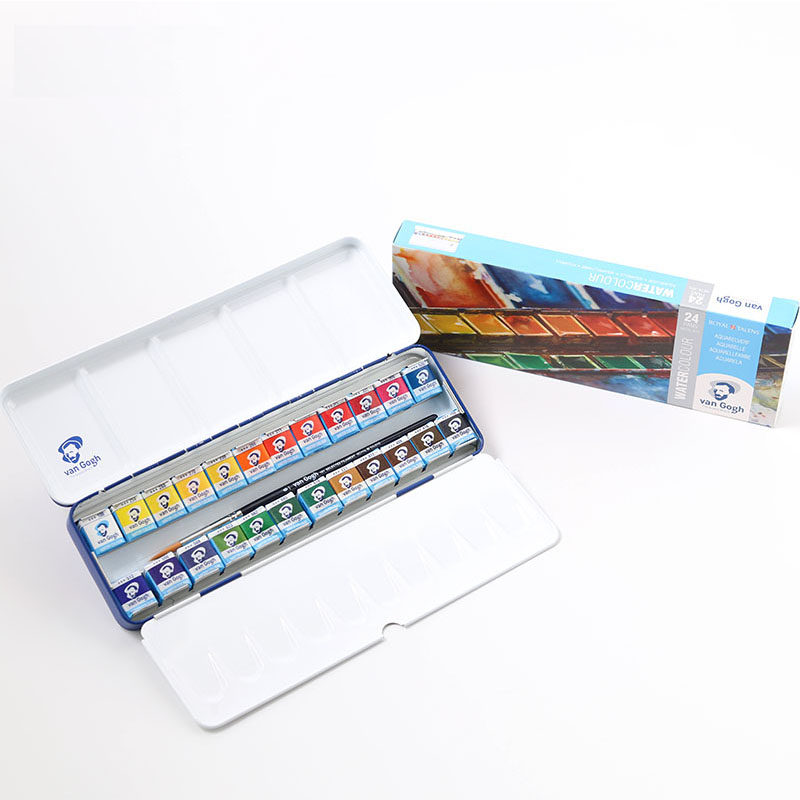 Imported Van Govan high solid water color paint suit portable iron case 48 color 36 color 24 color 18 color 12 color 12 color