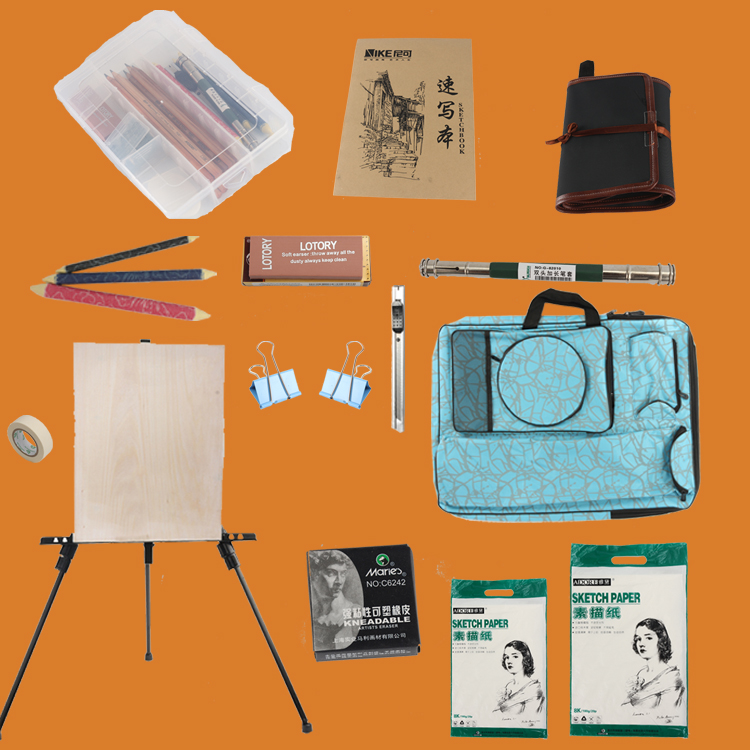 Marley fine art beginner 20 pieces of complete sketching easel drawing board drawing bag pencil with small knife pencil case sketching paper-Taobao