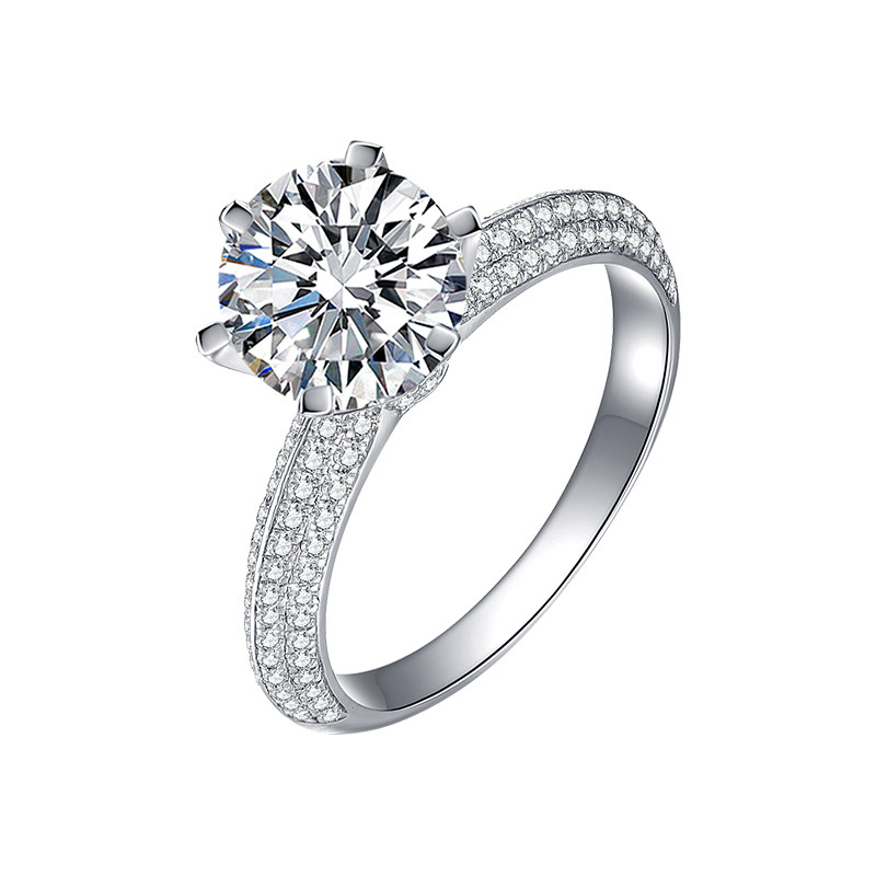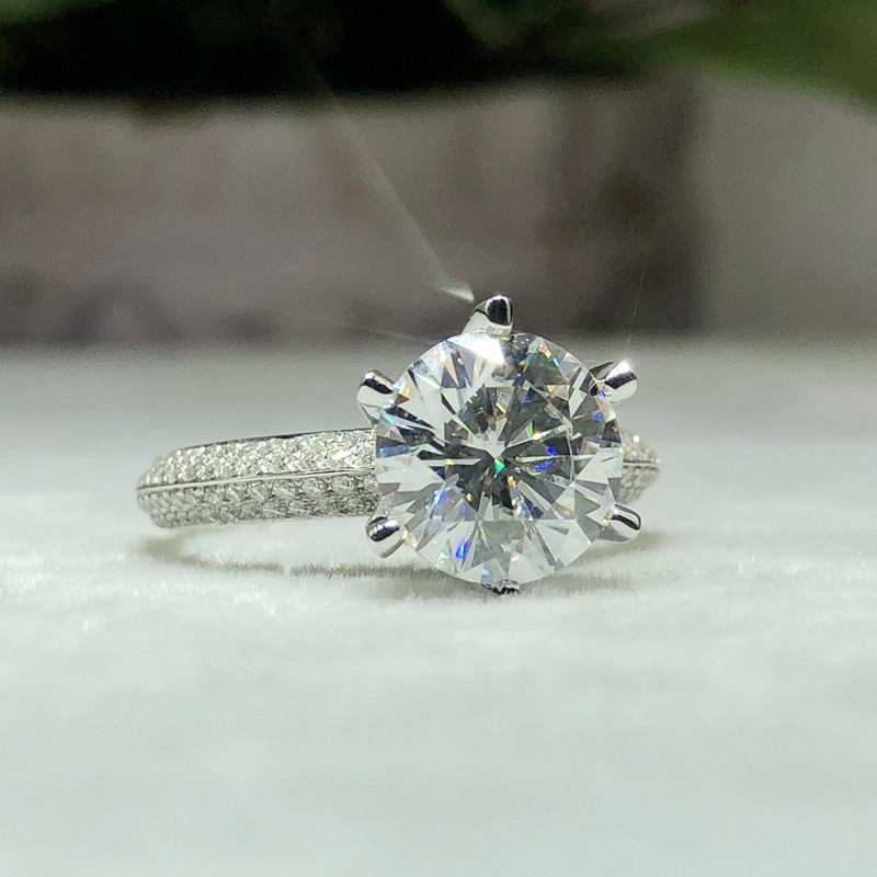 Hui Wei Jewelry 18K Platinum Color Gold gold T Half-wall Jiang Mountain Mosanstone ring 3456 carat female diamond ring pigeon eggs