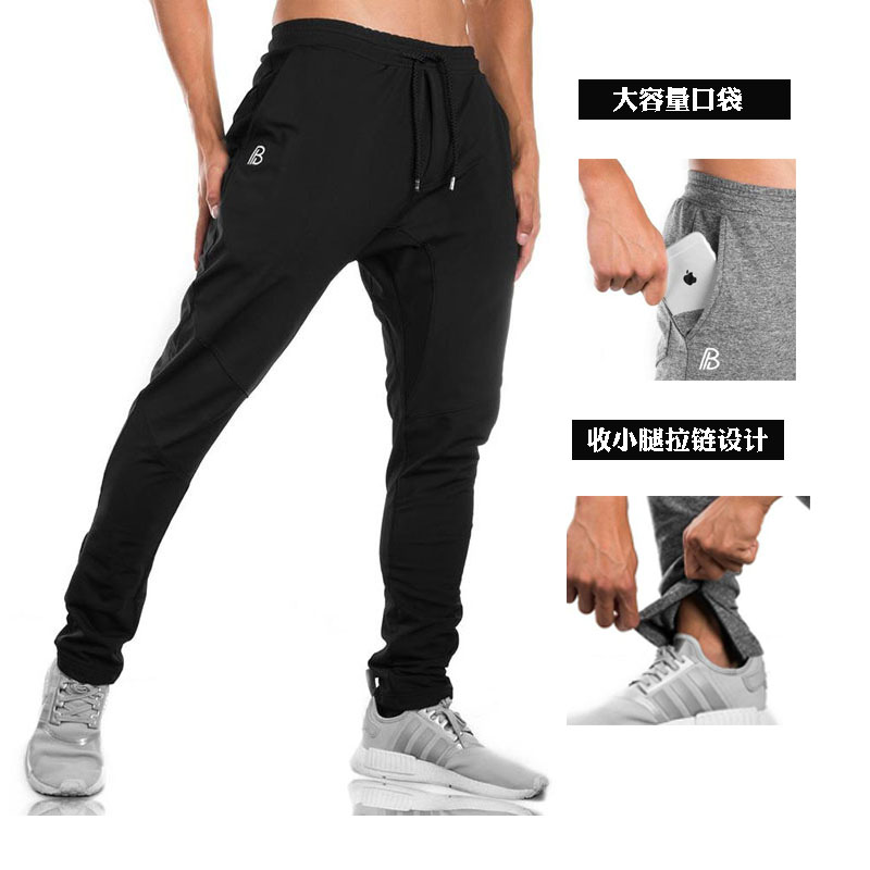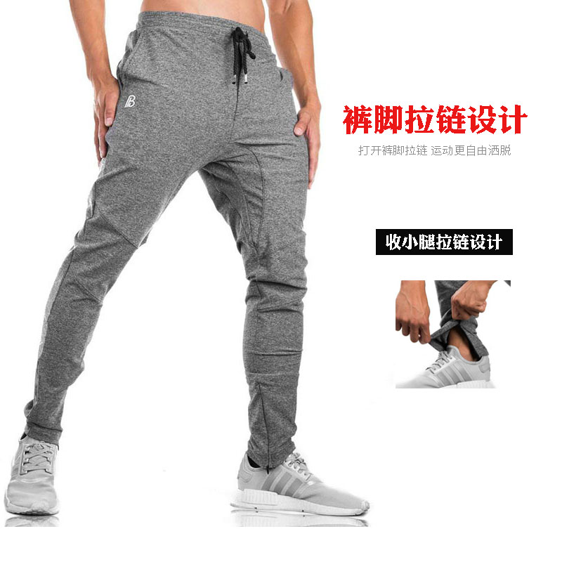 Muscle Kangaroo Spring Sweatpants Buns Foot Tide Male closing with bracelet Sports pants Grey black pedicure with small feet long pants