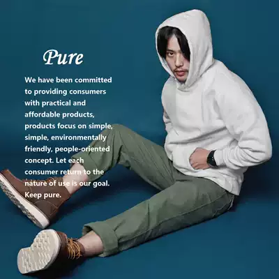 Pure ピ ア ア Japanese solid color cotton hoodie pullover casual top male hooded black white gray autumn basic model