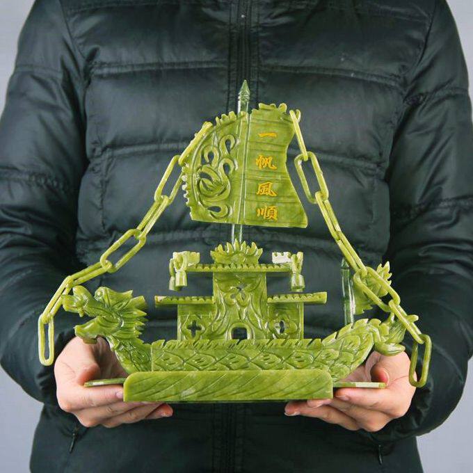 Natural jade 38cm dragon boat ornaments smooth sailing decorations high-grade gift craft gifts decoration jade living room creativity