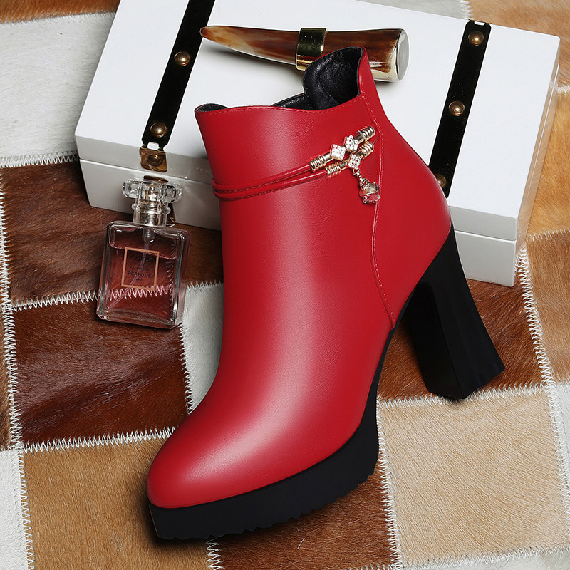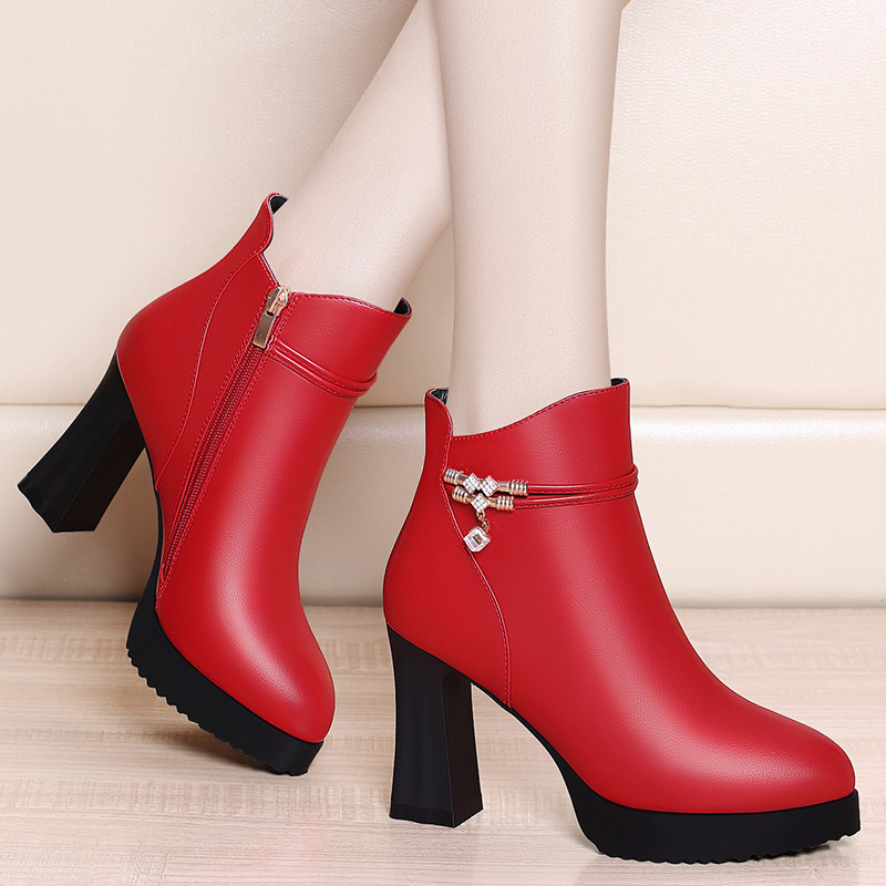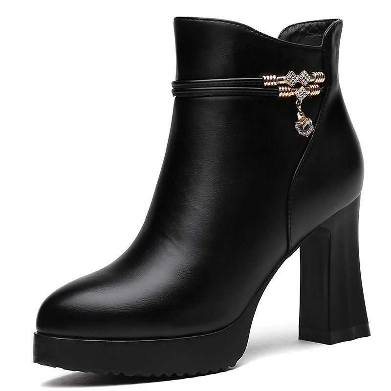 High heels women's autumn and winter 2022 new autumn and winter women's leather shoes black all-match thick-soled thick-heeled short boots women's fashion boots