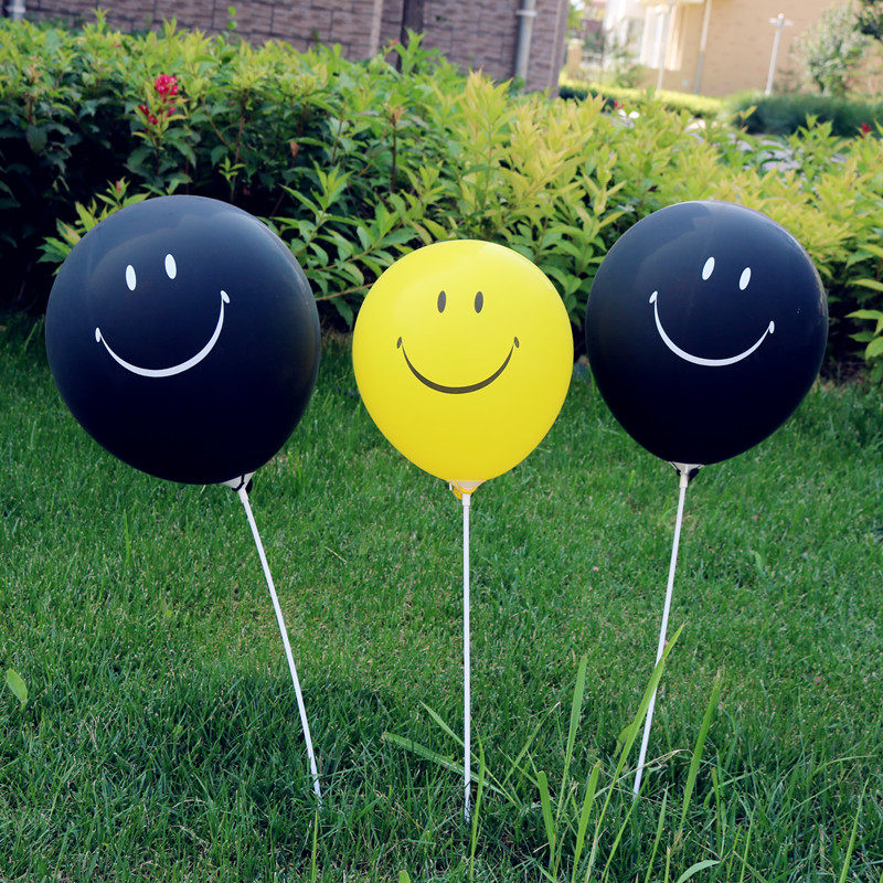 Yellow smiley face 20 1 small ribbon with (no other) yellow smiley face 50 white pole trust 50 1 inflator black smiling face 50 black rod trust 50 1 inflator black smiling face 50 white pole trust