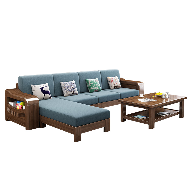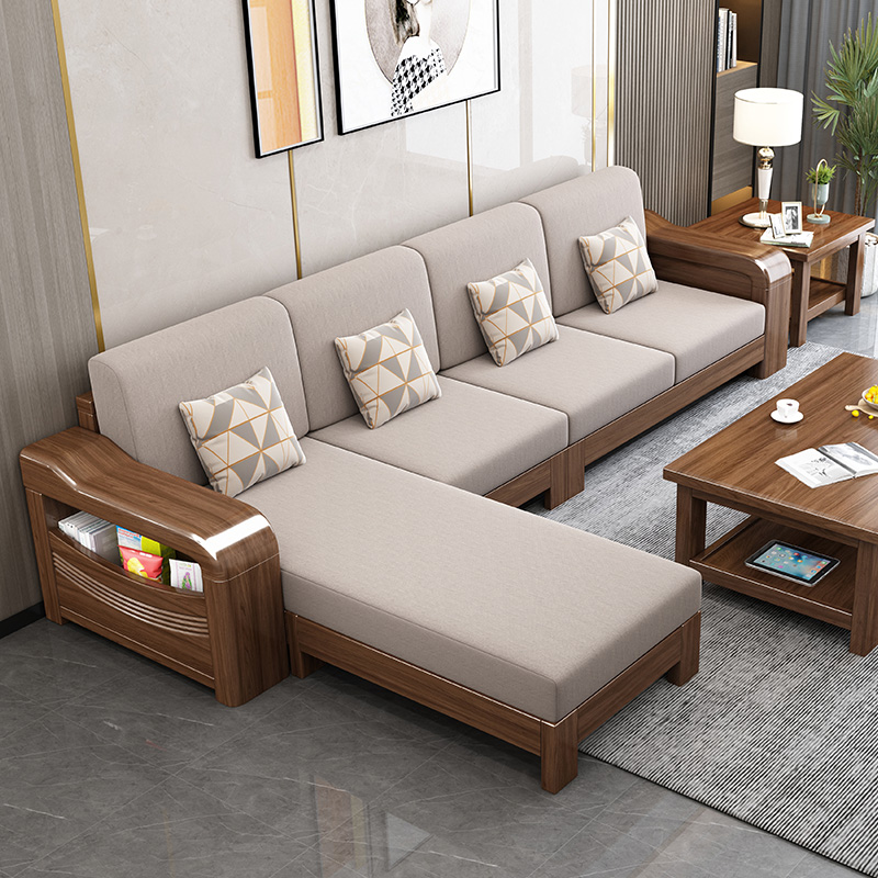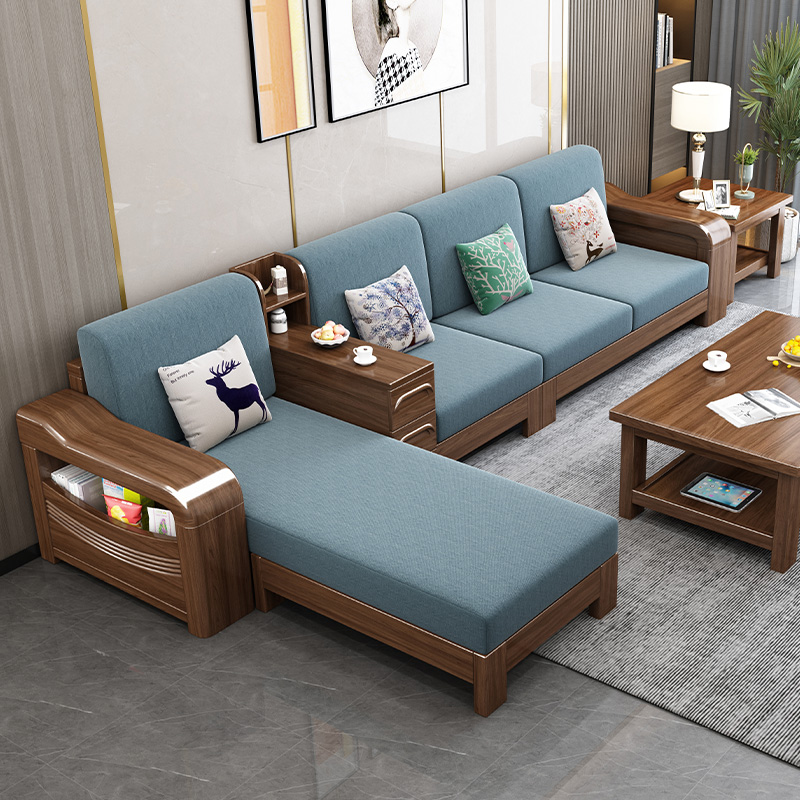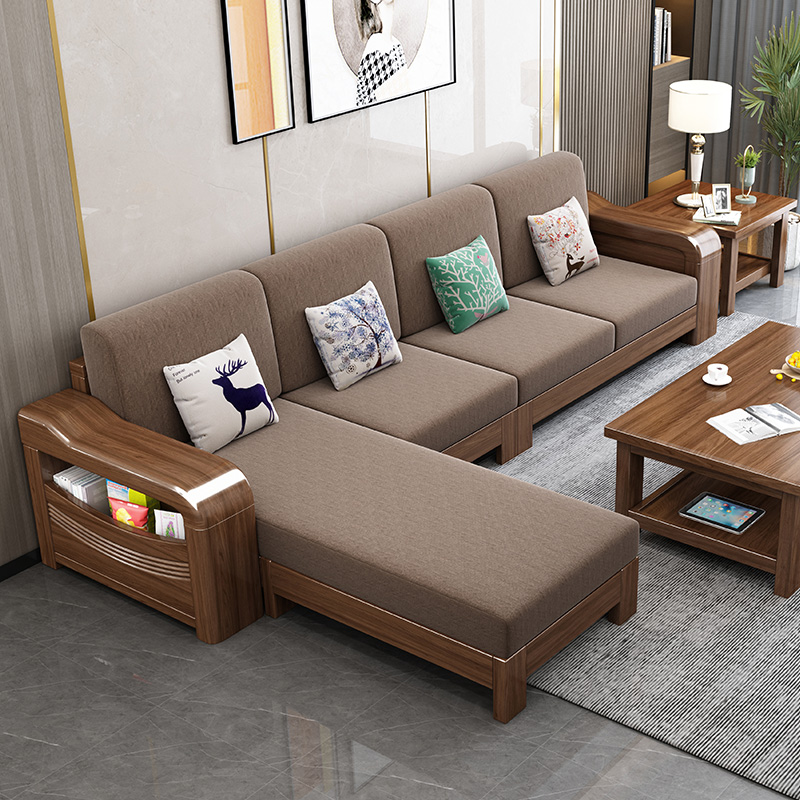 Golden walnut solid wood sofa combination new Chinese style winter and summer dual-use living room storage fabric sofa small apartment