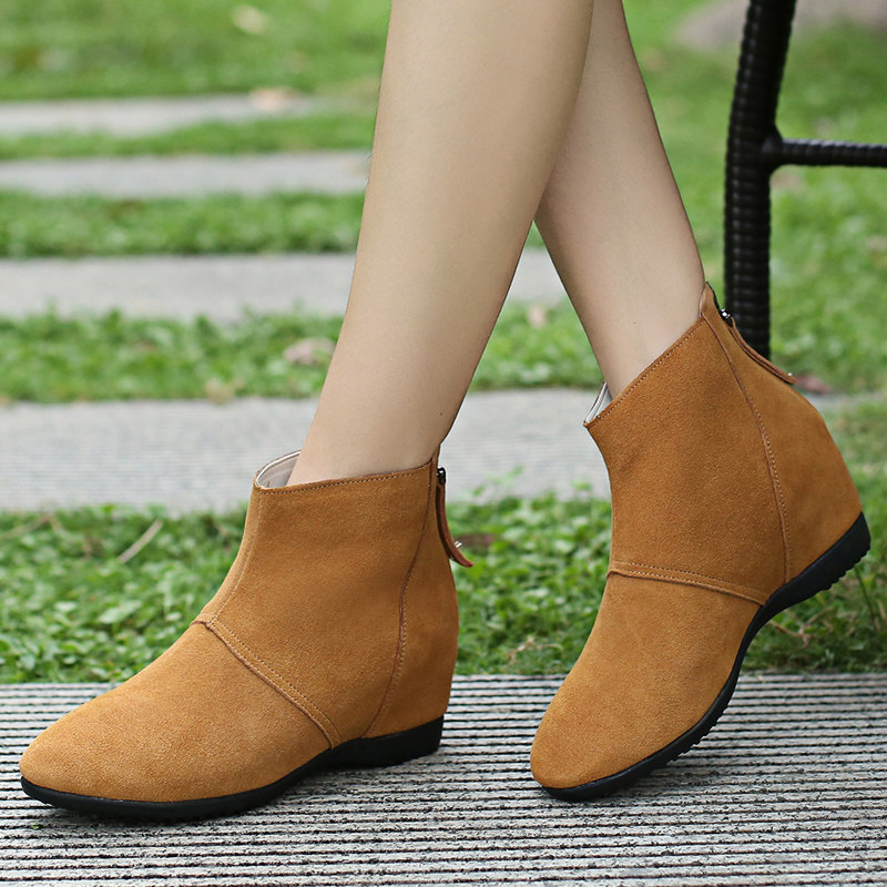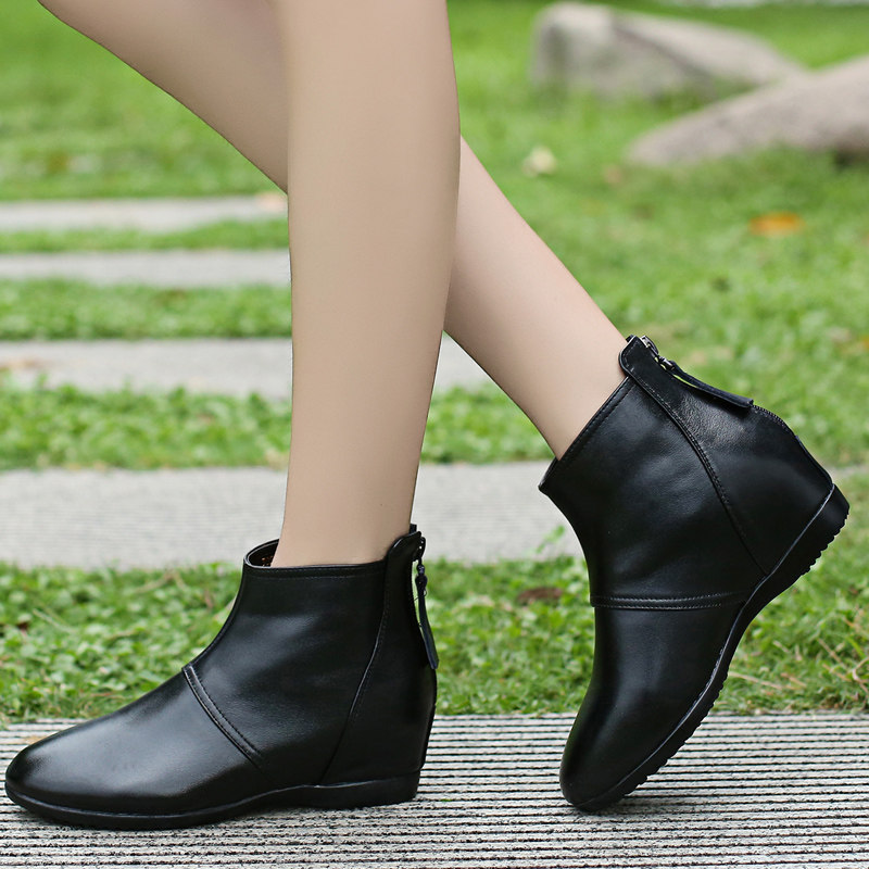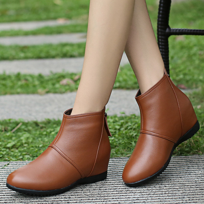 Inside Heightening Short Boots Woman Flat Bottom Spring Autumn Single Boots Winter 2020 New Small Leather Boots Women Boots Slopes Heel Genuine Leather Women Shoes