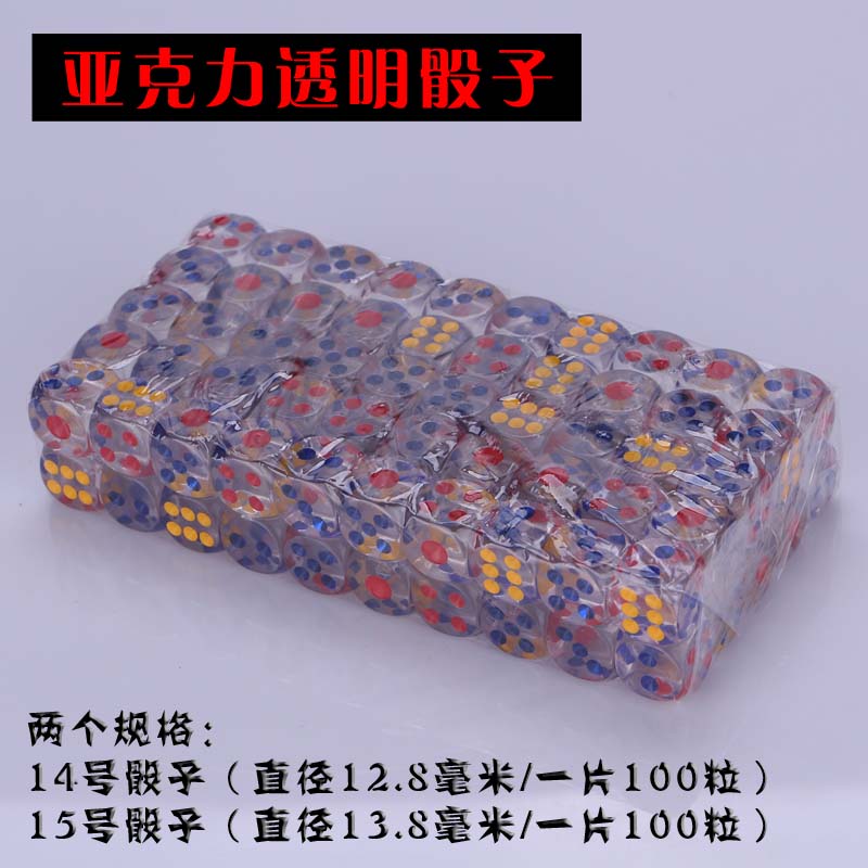 No. 15 transparent dice, 100, 14, transparent dice, 100