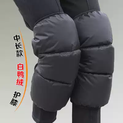 New winter down knee pads thickened warm cycling windproof knee pads elastic buckle medium and long version of electric car knee pads