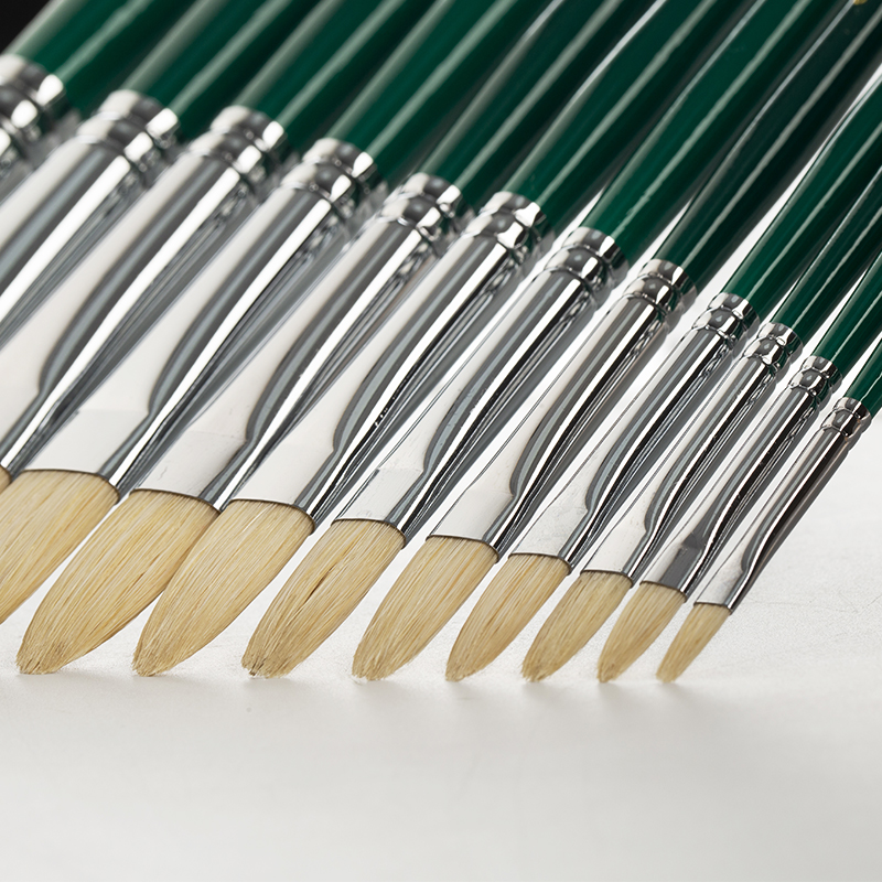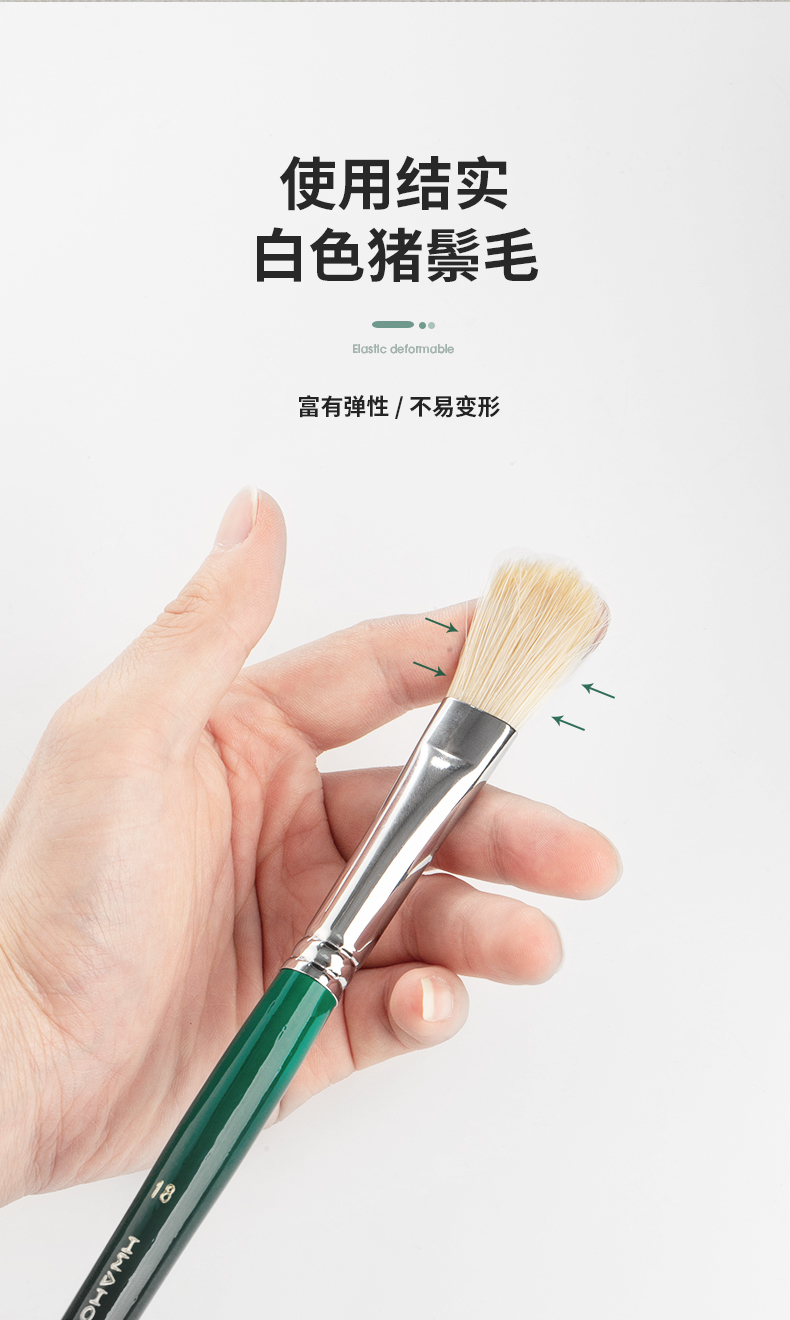 Imported Korean Huahong bristle oil brush flat round head tongue shape acrylic pen water gouache solid wood pole hard pen 808