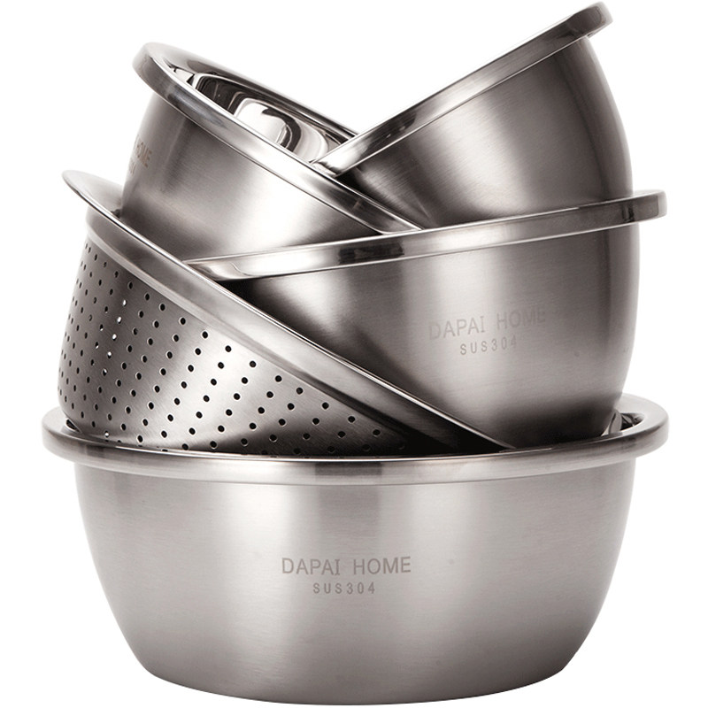 Da Pai House 304 stainless steel raspberry five-piece set kitchen supplies round basin thickened drain wash basin