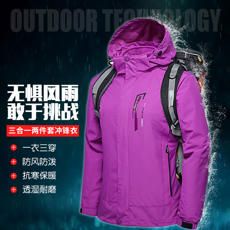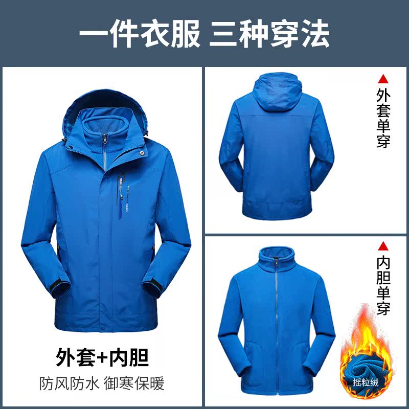 Submachine clothes three-in-one female autumn winter plus suede thickened male and two sets of climbing clothes wind clothes imprint LOGO custom work clothes