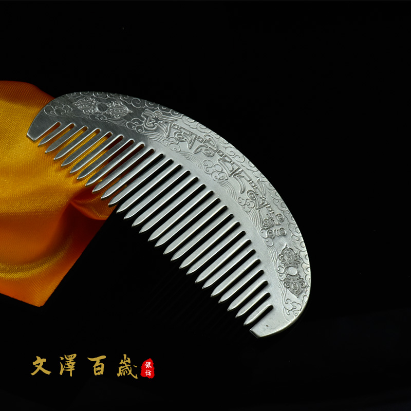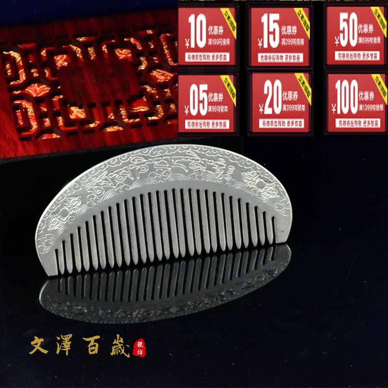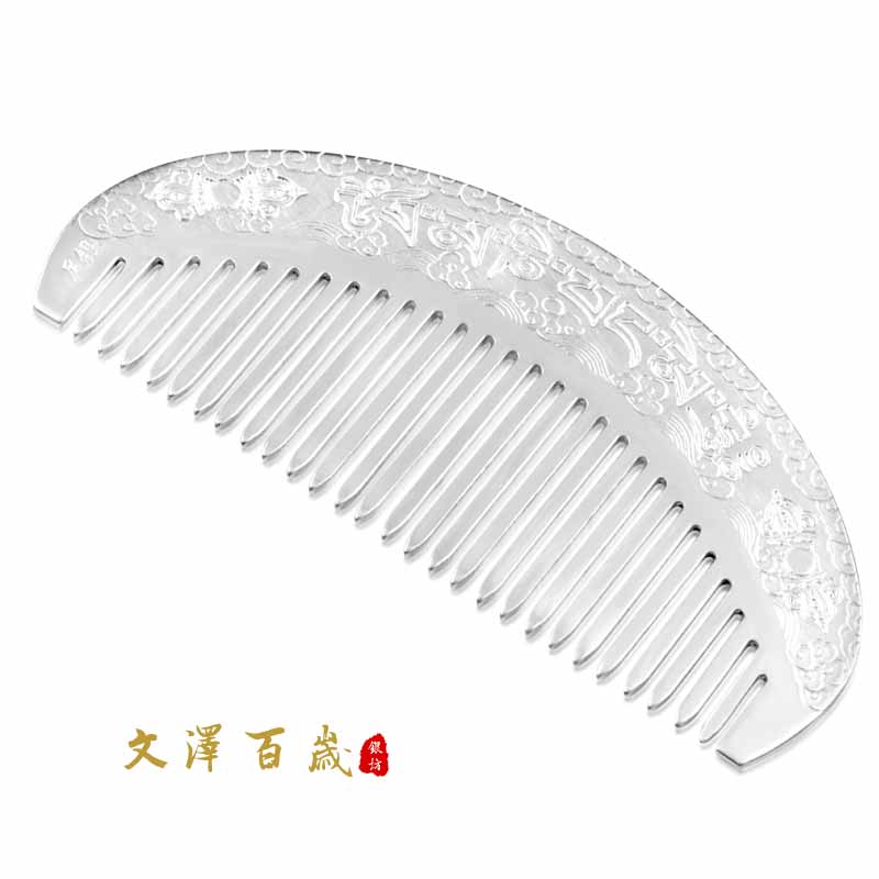 Foot Silver Comb 999 Six words true to hand silver hair comb Snowflake silver scraping and sending mother's girlfriend silver comb NO2198-Taobao