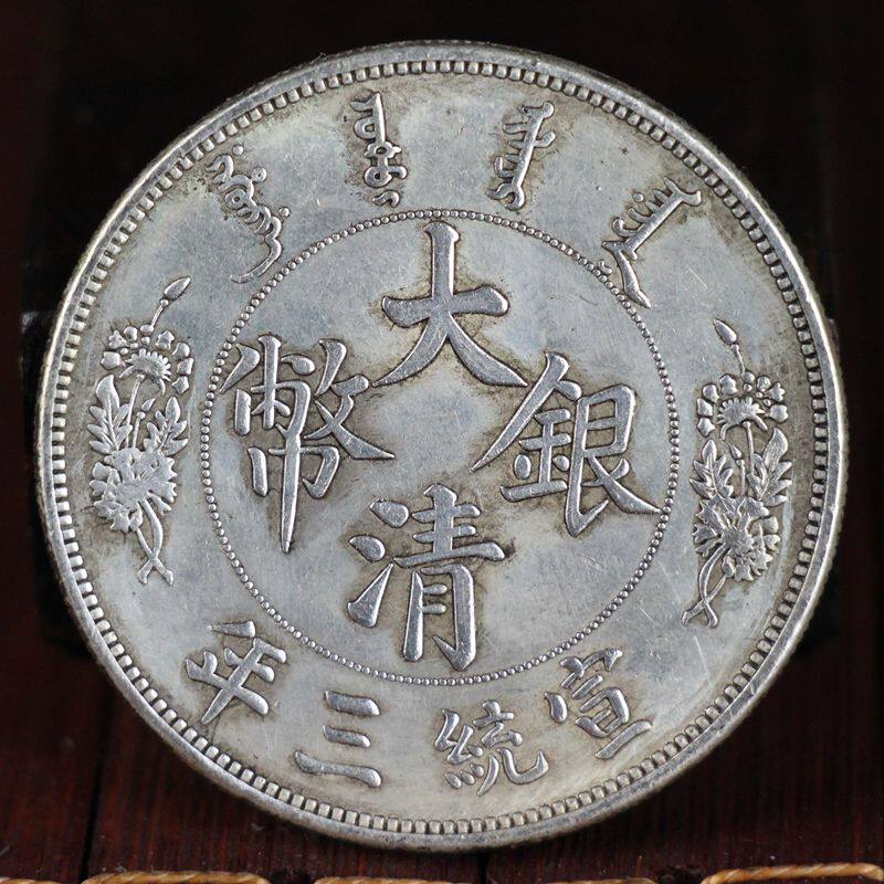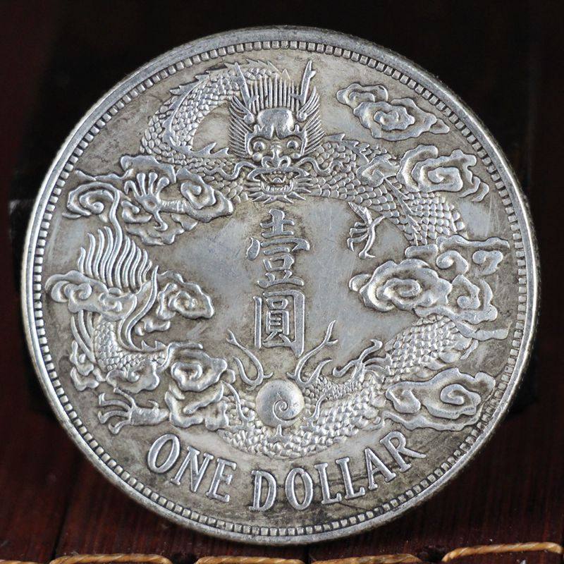 Silver ingot Silver Yuan Yuan big head Longyang ancient coin simulation products Qing Silver coin Xuantong three years can blow the big tail dragon