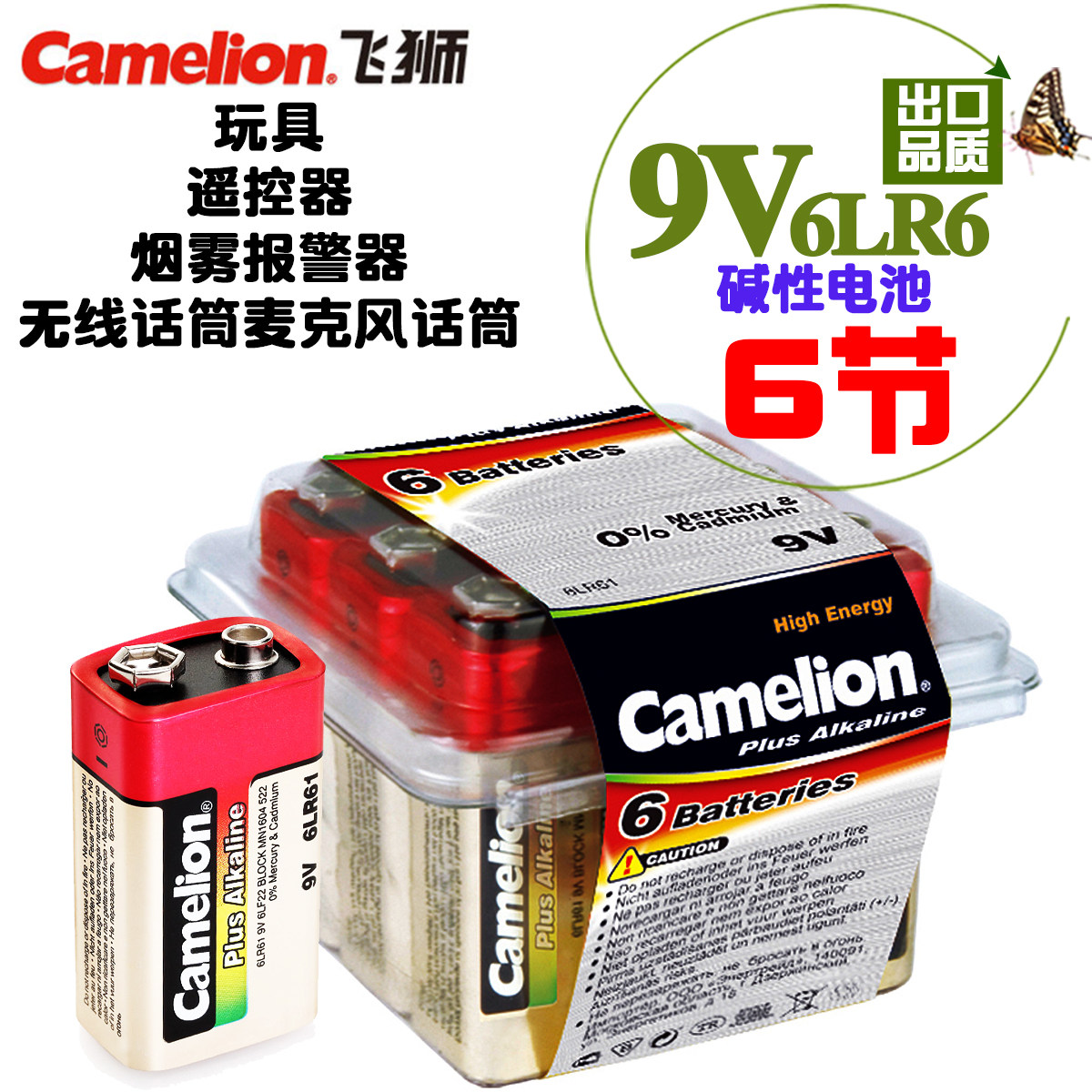 Camélion Flying Lion 9V Alkalis Battery 6LR61 Ultra 6F22 Wanner with electric meter siren Mike microphone toy