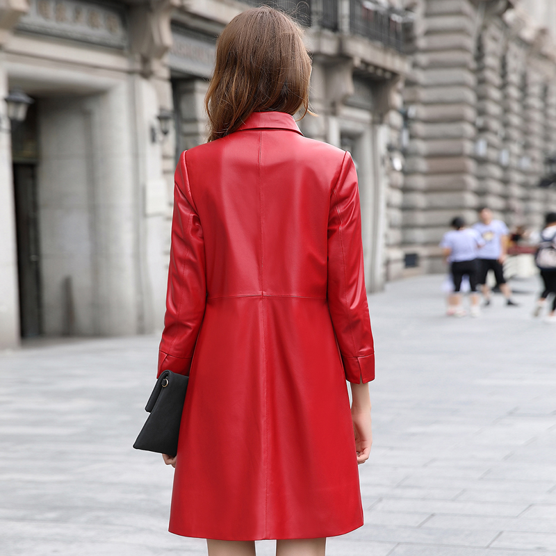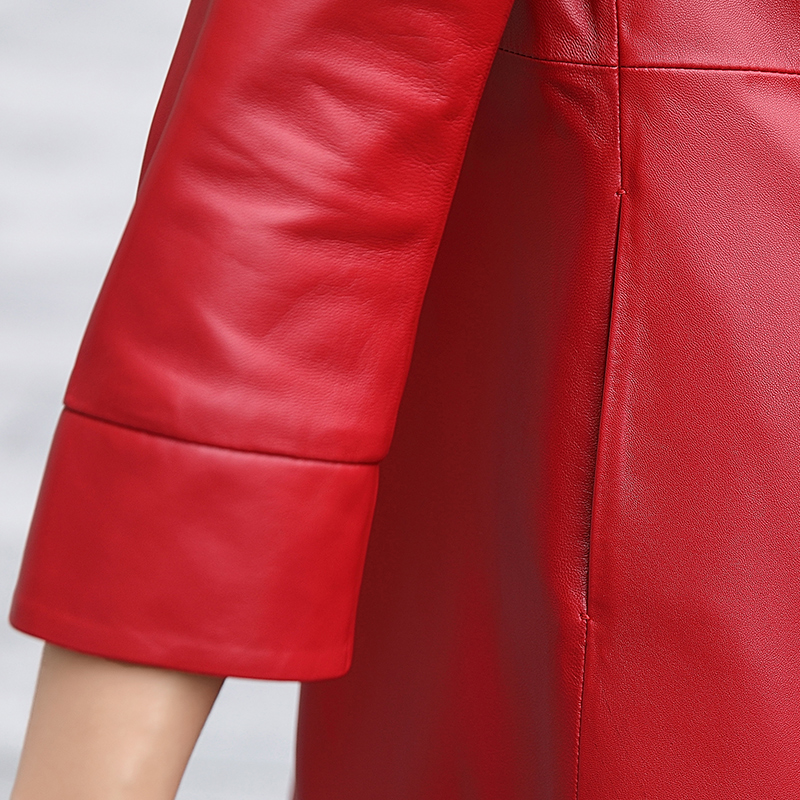 Breaking code clearance autumn and winter new sheepskin windbreaker coat fashion genuine leather coat women's mid-length slim leather coat