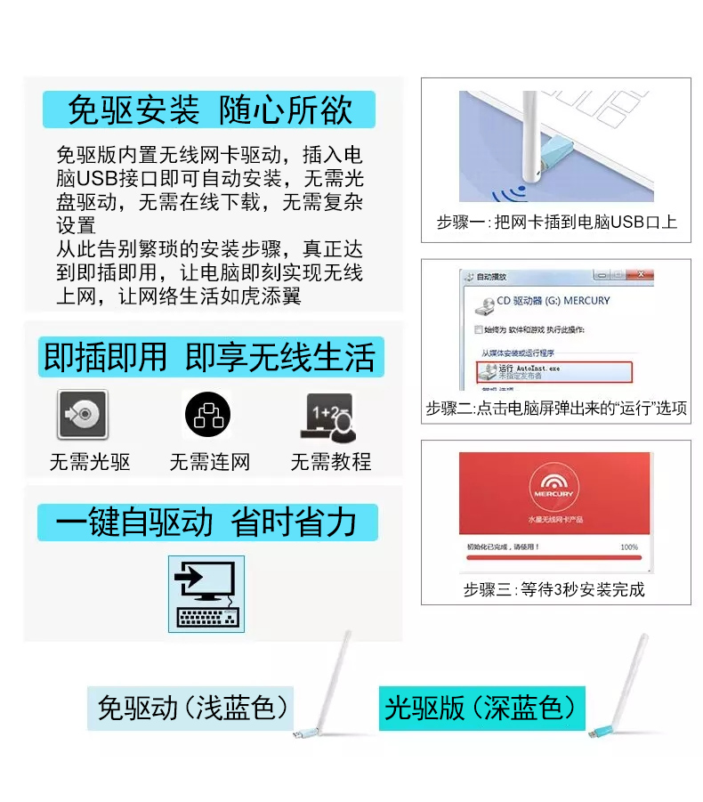 Mercury Wireless Network Card Desktop Laptop USB Drive Free Network Card Wireless Portable Computer Wifi Receiver