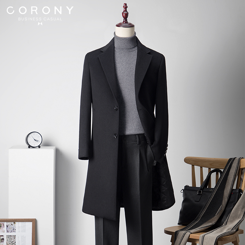Wool coat men's medium and long business tooling thickened and cotton slim autumn and winter large size windbreaker jacket