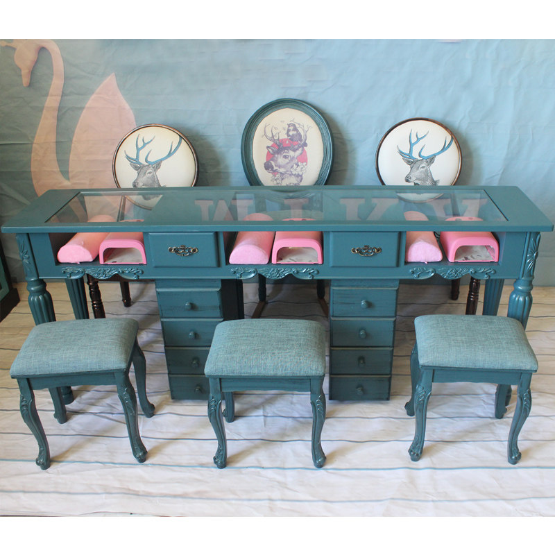Single Double Trio Special Price Nail Table Manicure Table Blue Baking Lacquered Table And Chairs Suit American Medecor Table