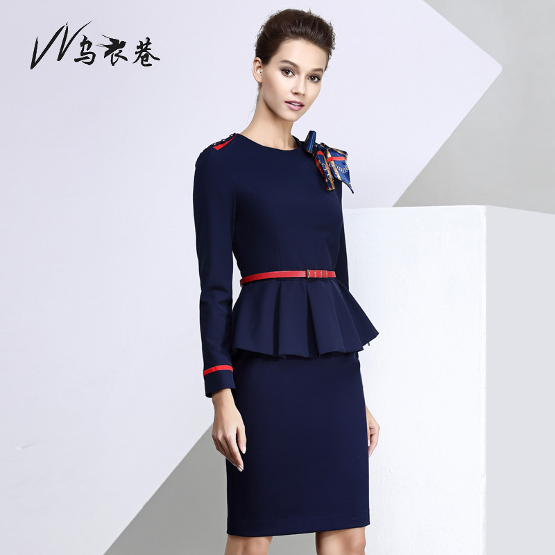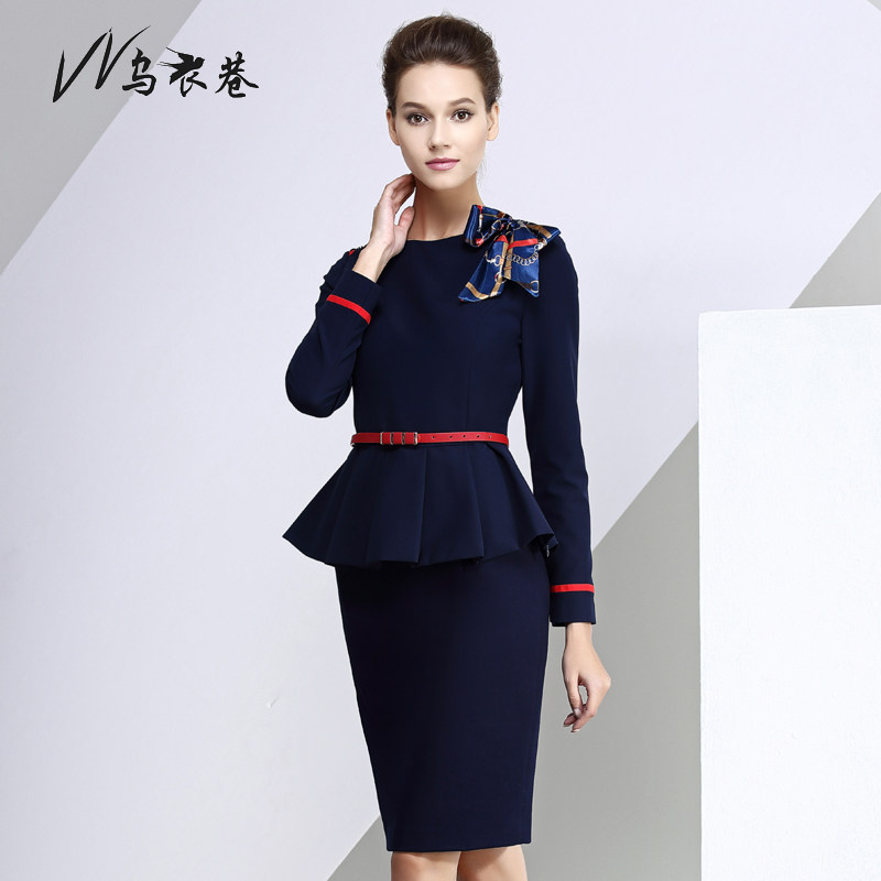 Wuyi Lane spring and autumn stewardess uniform fashion dark blue hit red professional women's suit pants temperament OL skirt overalls