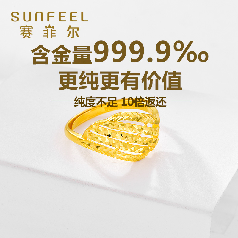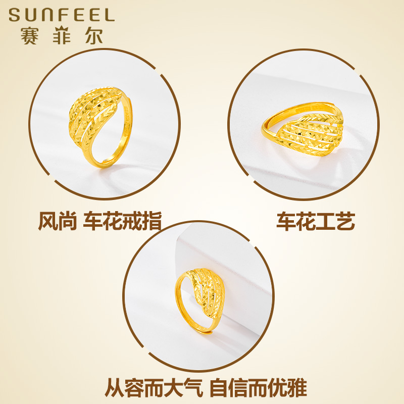 Sephire jewelry gold ring fashion car flower gold 999 9 live female ring car flower shine pricing