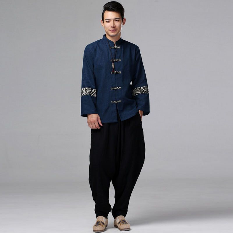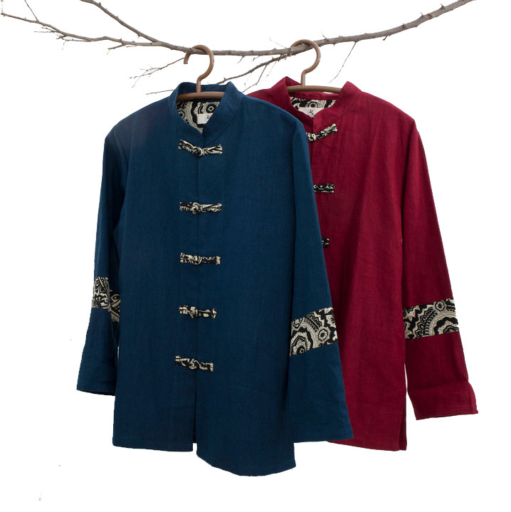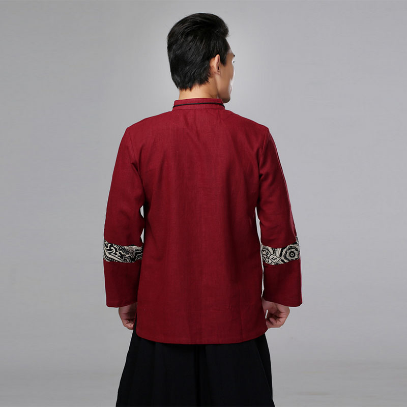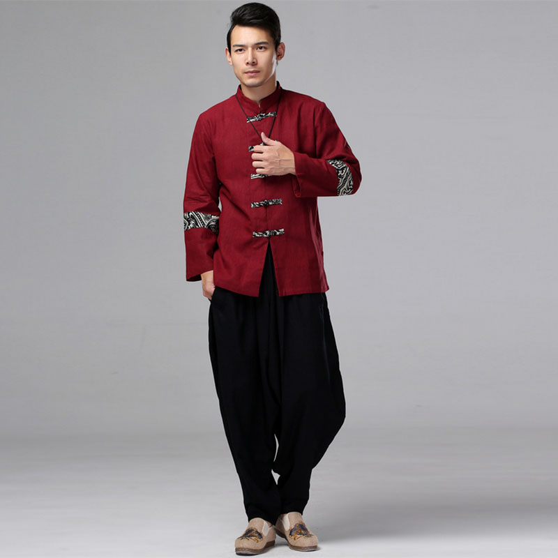 Linen top men's Chinese style autumn and winter short coat Tang suit stand collar plate button ethnic clothing Chinese style Hanfu Zhongshan suit