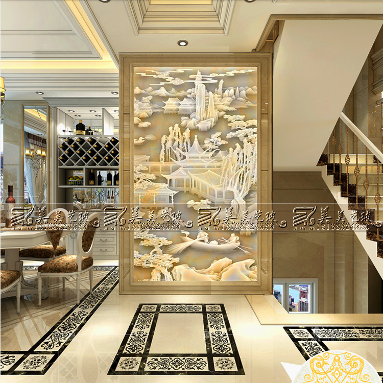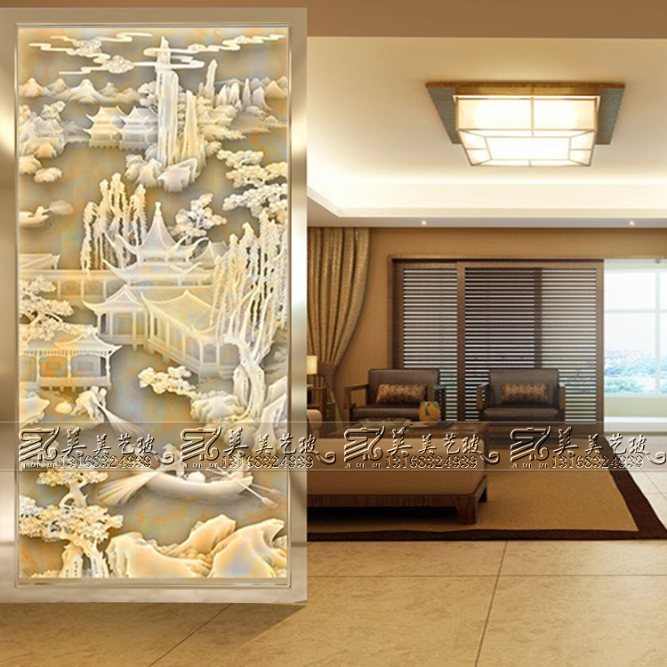 Art glass parlor wall partition screen aisle entered 3D stereo jade sculpture process landscape painting