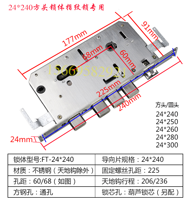 Double-fast double-pass double-active anti-theft door smart lock fingerprint lock special lock body 24 small square head 6068 full multi-size
