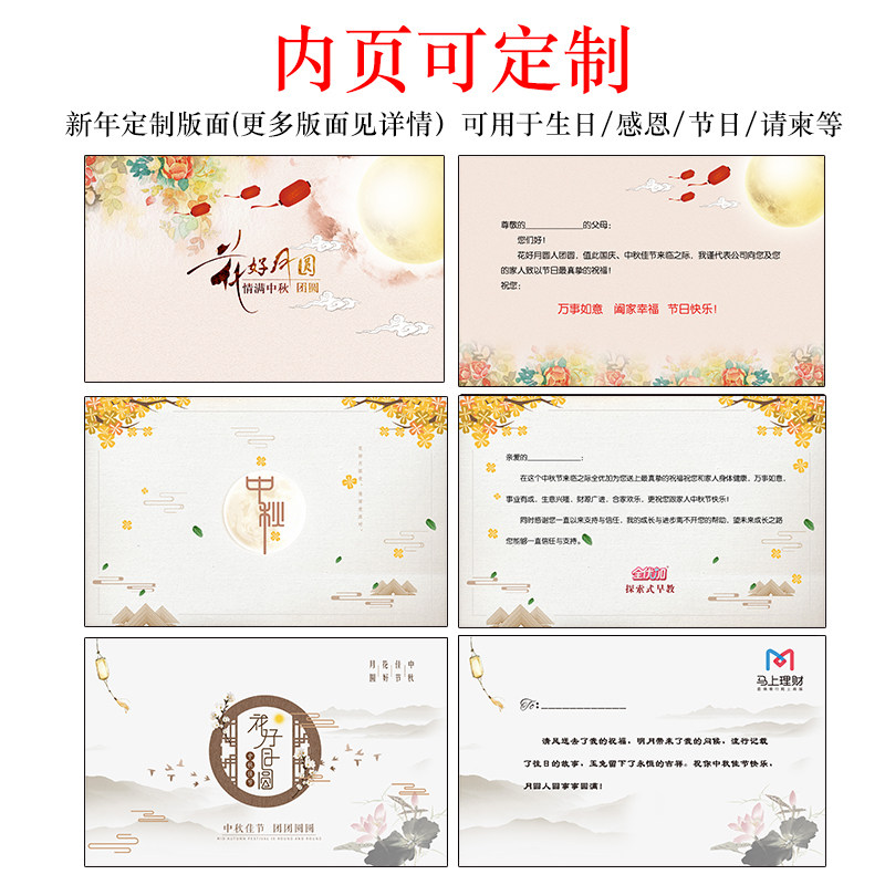 Mid-autumn greeting card custom thanksgiving thank you blessing creative high-end employee birthday card teacher's day high sense 2022