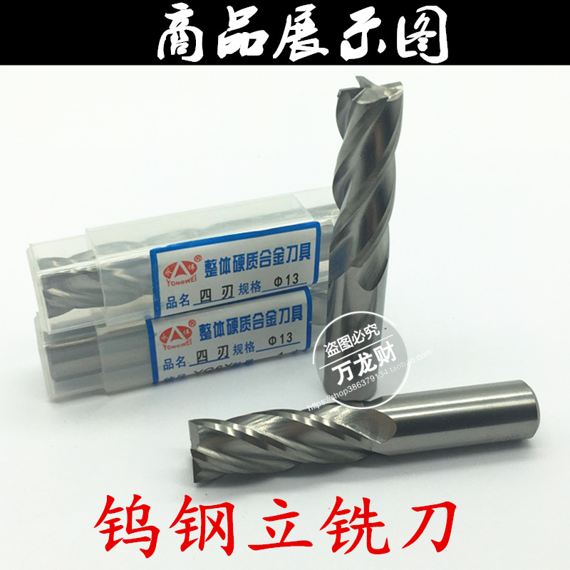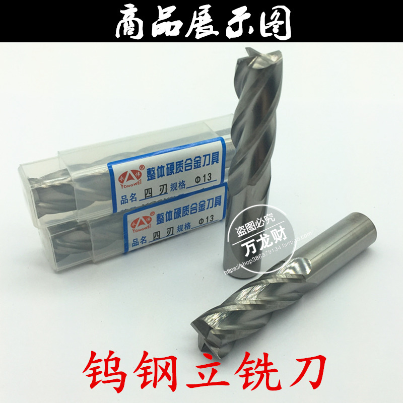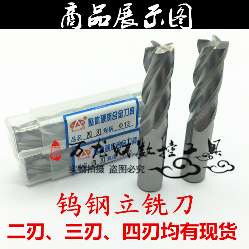 Yongwei overall alloy four-edged end mill 2-edged 3-edged straight handle flat head tungsten steel milling cutter 9-17 5mm lengthened YG6