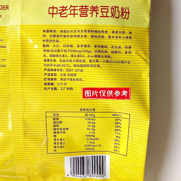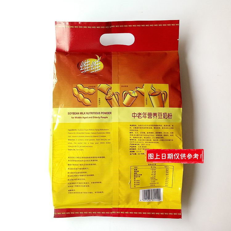 Weiwei middle-aged and elderly nutritional soybean milk powder 500gx5 bags high calcium protein vitamin oligosaccharide adult powder