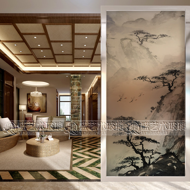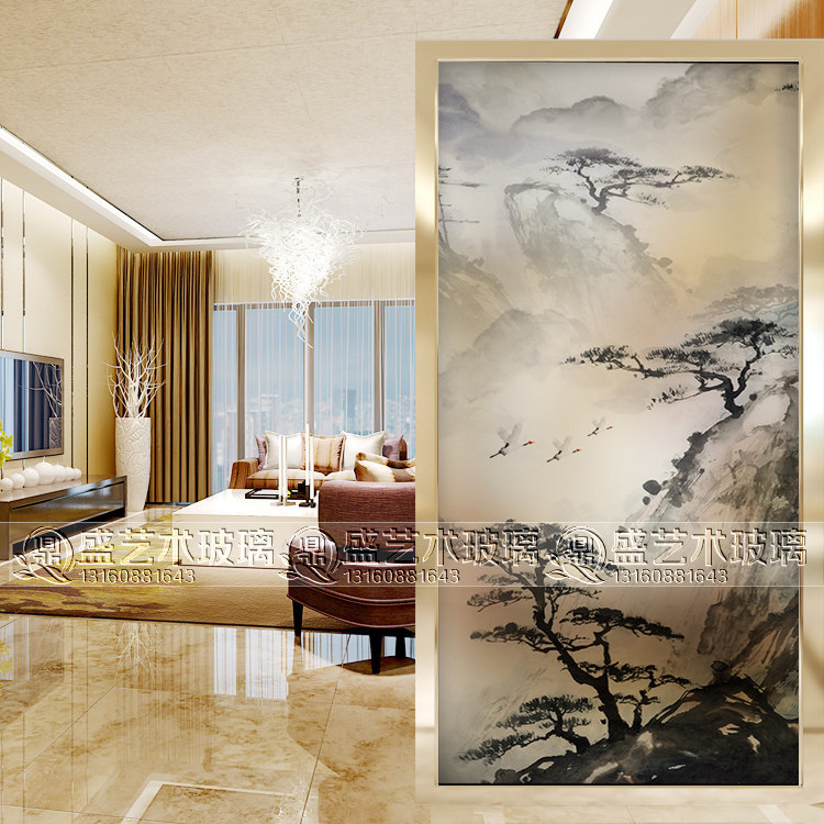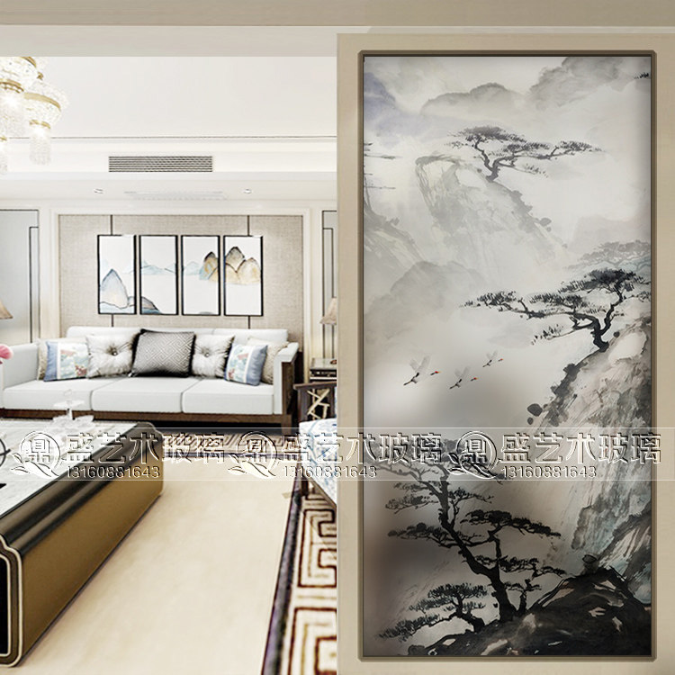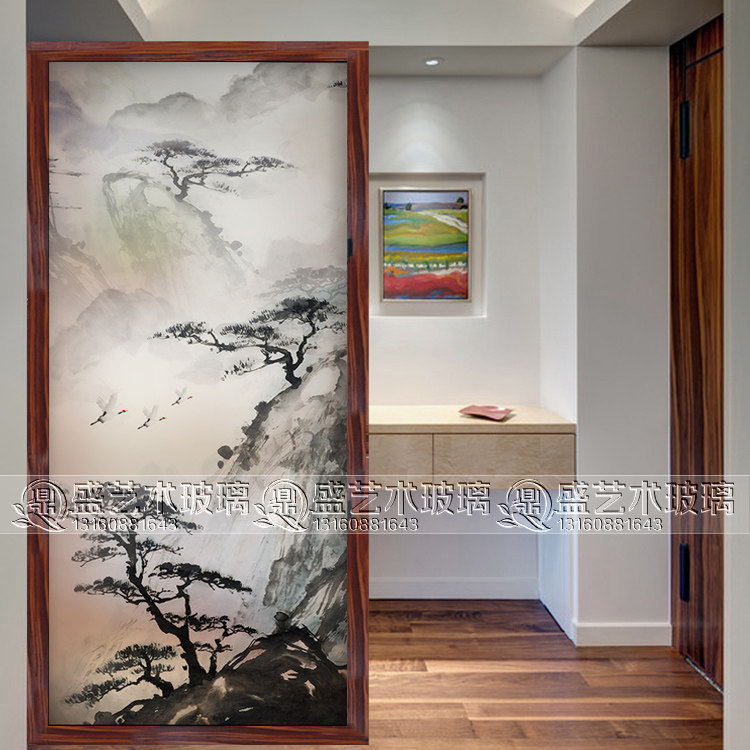 Art glass entry shoe cabinet moving door push and pull door double-sided grinding process screen partition entry ink pine