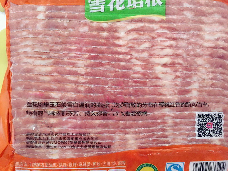 Haiyang snowflake meat slices 1 5KG pizza snowflake bacon large bag commercial whole box with onion grab cake breakfast smoked meat