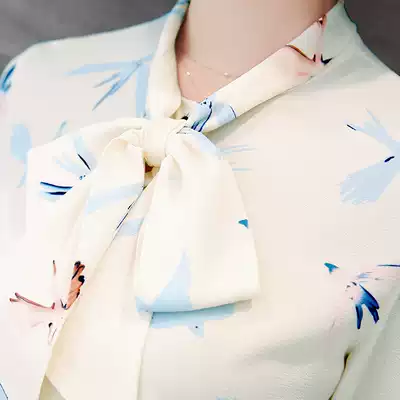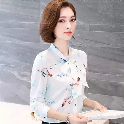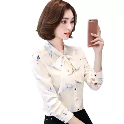 2021 floral long-sleeved chiffon top women's autumn and spring new Korean version of wild shirt bow lace-up shirt