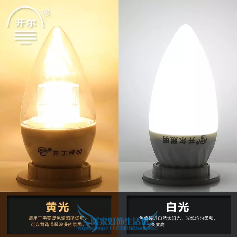 Kaier lighting led candle pull tail bulb E14 tip bulb 4W5W energy-saving crystal lamp special screw mouth household lamp
