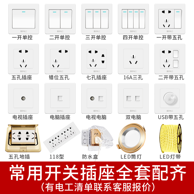 (3pcs) International Electrician Type 86 wall switch socket panel white power cable TV network