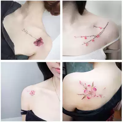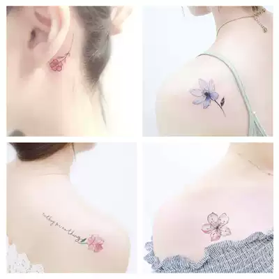 Tattoo Stickers Waterproof female long-lasting simulation English Korean small fresh flowers Cute Ankle clavicle Stickers