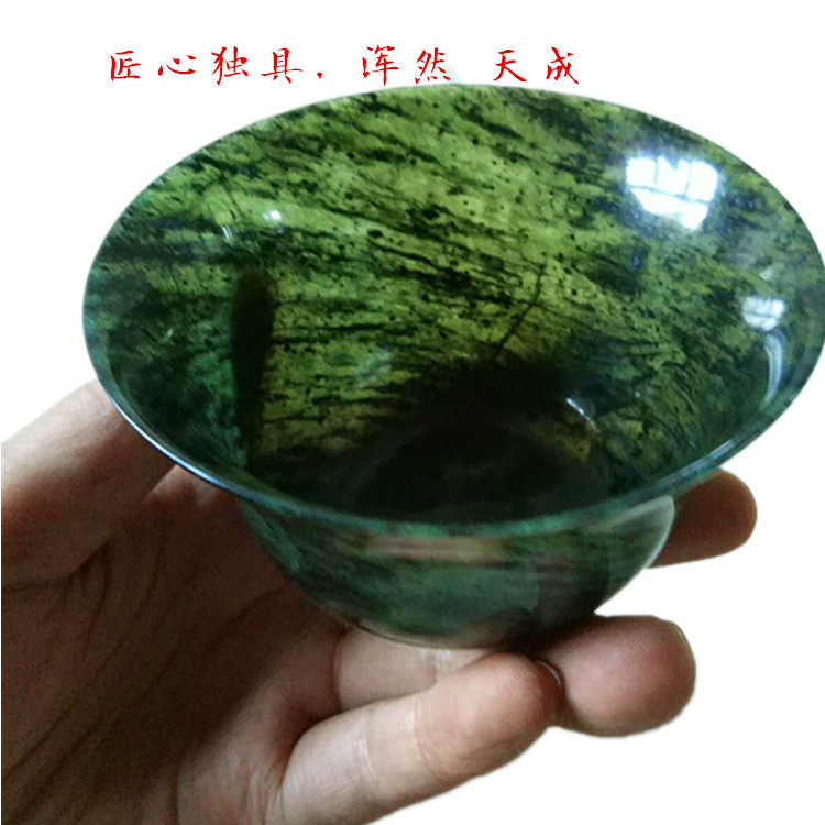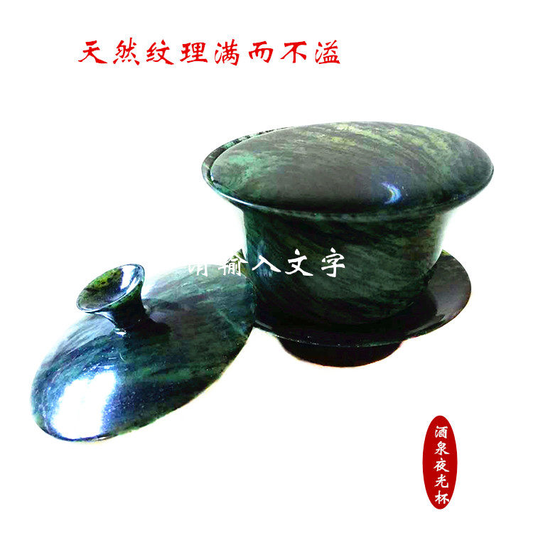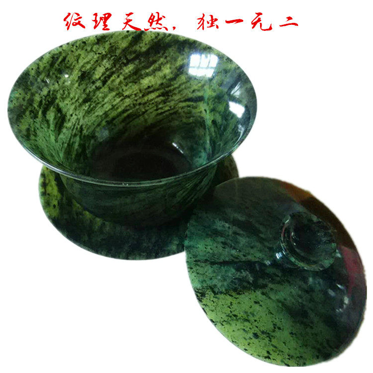 Jiuquan luminous cup snake pattern jade first-class collection grade jade cover bowl tea set Qilian jade emerald jade black jade factory direct sales