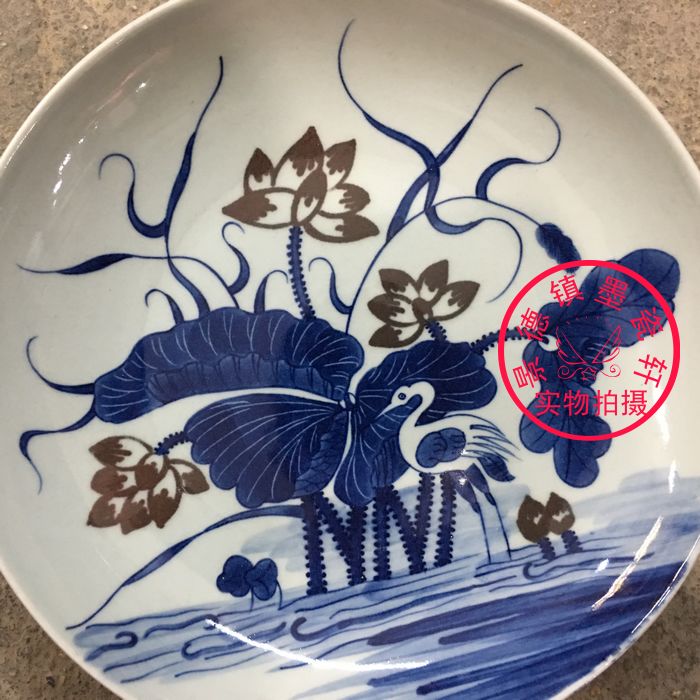 Jingdezhen Cultural Revolution Factory goods Porcelain Ware Turquois Hand Painted Glazed Red Lotus Porcelain Disc Collection Bag Old Fidelity-Taobao