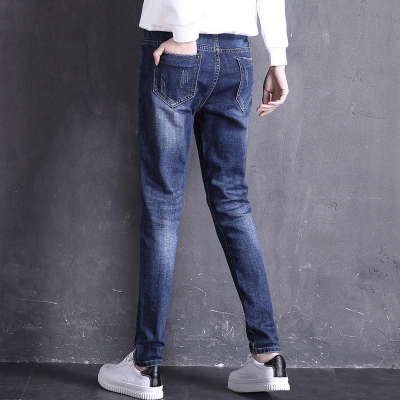 Thin section tightness waist jeans Women Summer new high waist black loose casual display slim lengthened Harun pants large size
