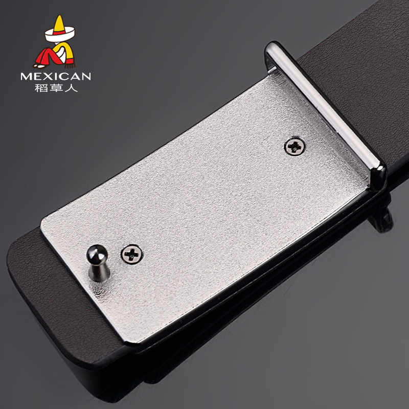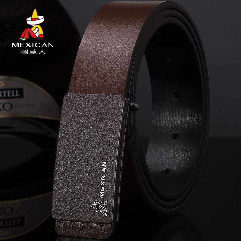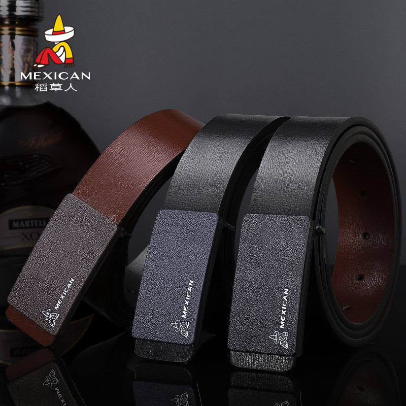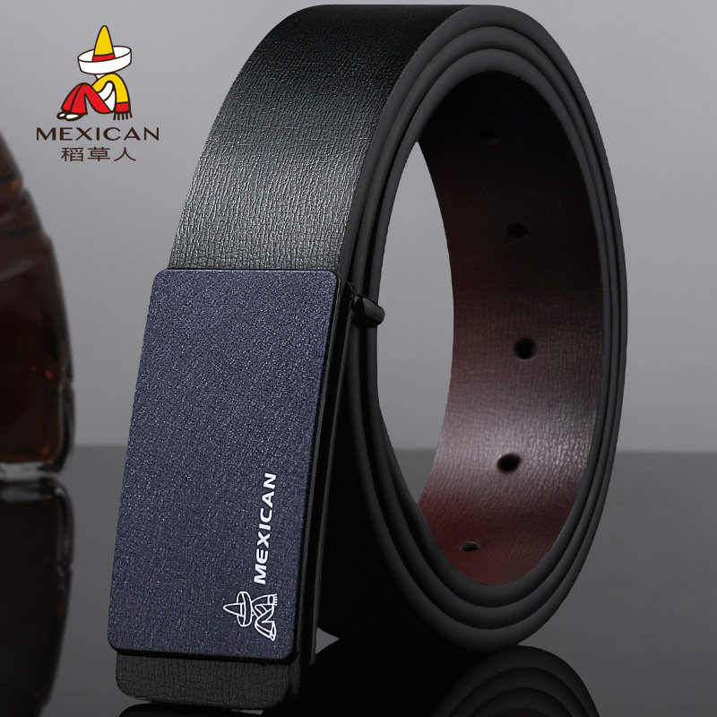 Scarecrow belt men's leather smooth buckle youth casual trend Korean version of the belt student leather youth belt