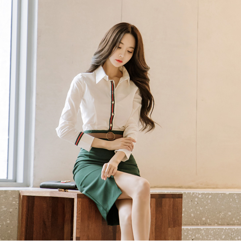 2021 Autumn Fashion New Korean version Fashion temperament Skinny Pack Hip Dress Woman OL Career suit Work suit