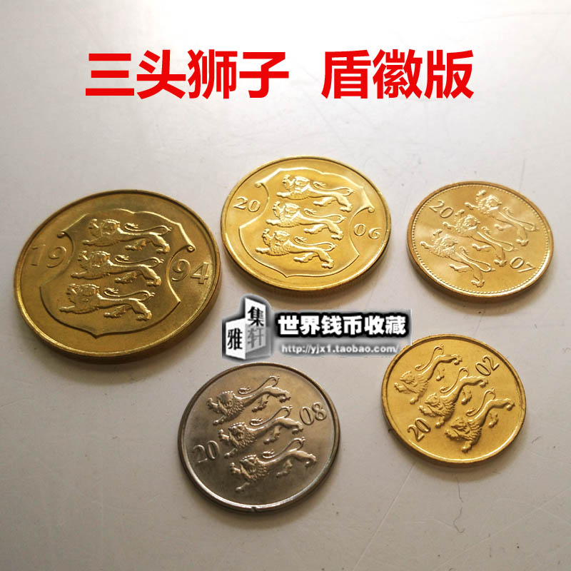 Foreign coins are new Estonian coins 5 coins and 3 lion shields in Europe