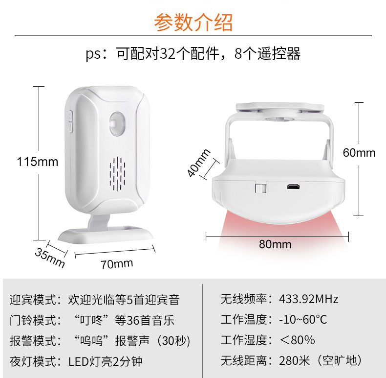 Long-distance wireless separation store arrival reminder sensor welcome doorbell welcome device reminder