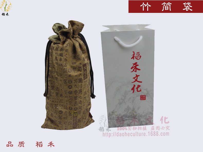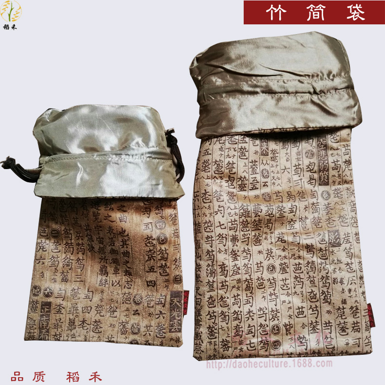 Bamboo slip packaging cloth bag imitation deerskin bundle mouth bamboo slip cloth bag Chinese style chess book cloth bag