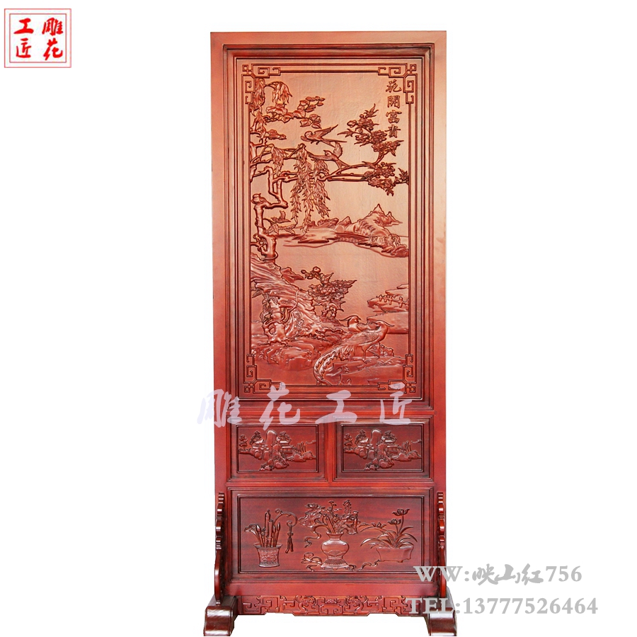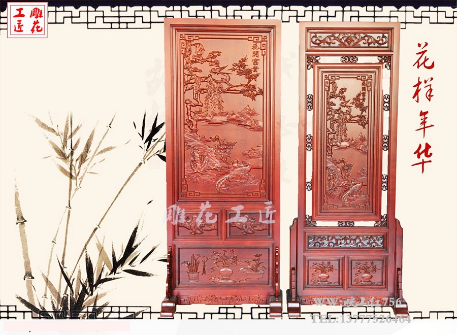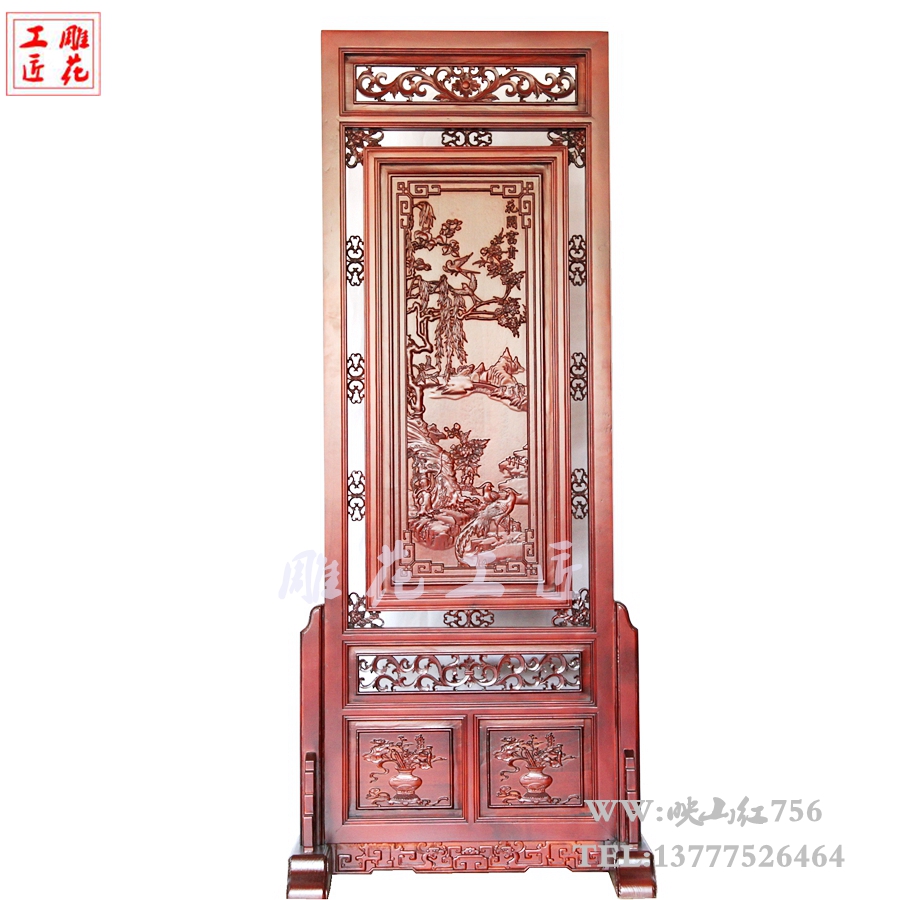 Dongyang wood carving solid wood screen Small size seat screen Floor-to-ceiling screen decoration entrance partition Chinese flower rich plug-in screen