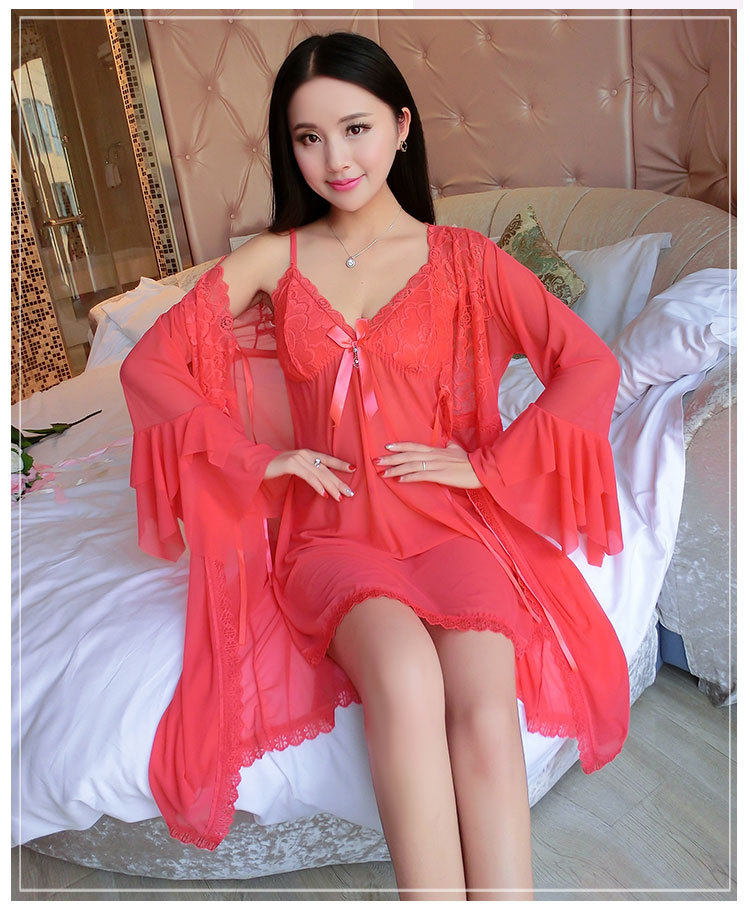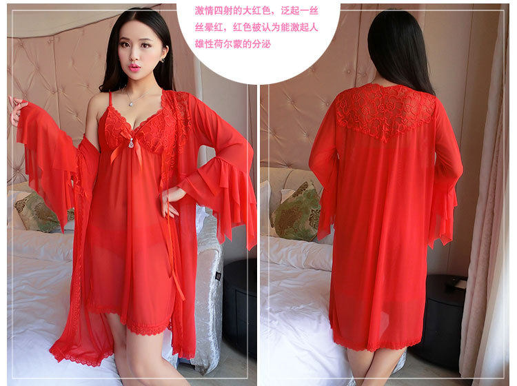 Ice silk sexy pajamas female summer suit with chest pad hot adult mood clothes spring and summer large size sex nightgown