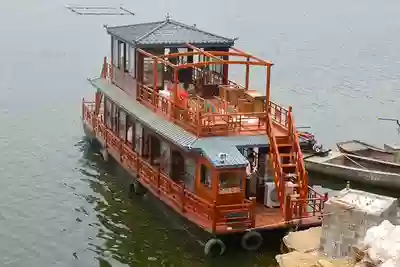 Large double-decker Leisure Farm hotel accommodation and dining boat motor mobile glass fiber leisure sightseeing tourism music wooden boat